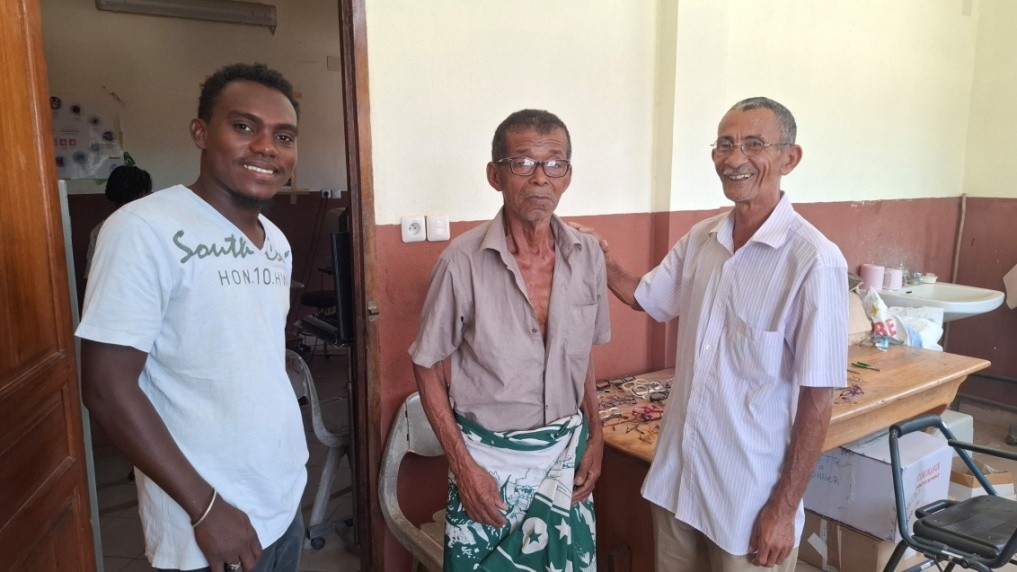 Joséa et moi avons travaillé harmonieusement avec ceux de la Clinique St Damien, particulièrement Dorice aux consultations, Algino et Patrick à l’atelier d’optique, Solange à la stérilisation, et Eric au bloc.
