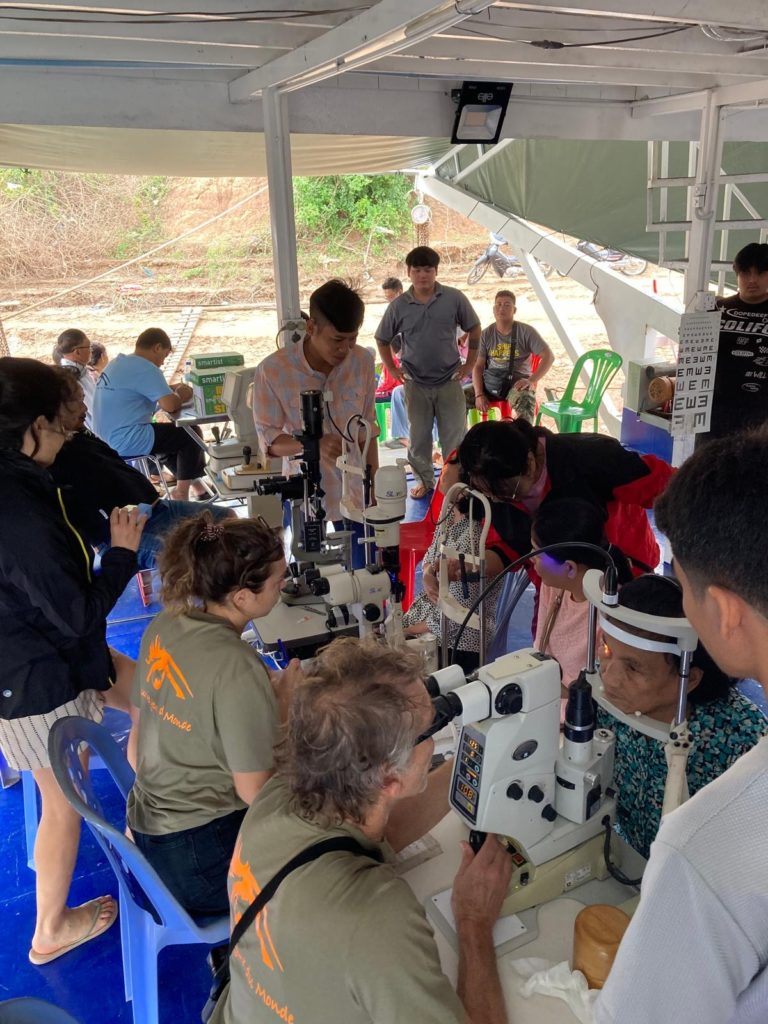 En résumé : beaucoup de cataracte bilatérales obturantes dans la région de Kratié, du glaucome ++ , ptérygions cécitants, des subluxations cristalliniennes sur PEC ou post traumatique.